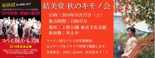 結月でございます。 ちょっと前にもお話しましたら、10月27日(土)に結美堂で秋のキモノ会をやります。 上野の東京文化会館にスペイン国立バレエ団を着物で行きましょう! 集合時間は、12:45を予定してます。 スペイン国立バレエ団でボレロを狙う! このス…